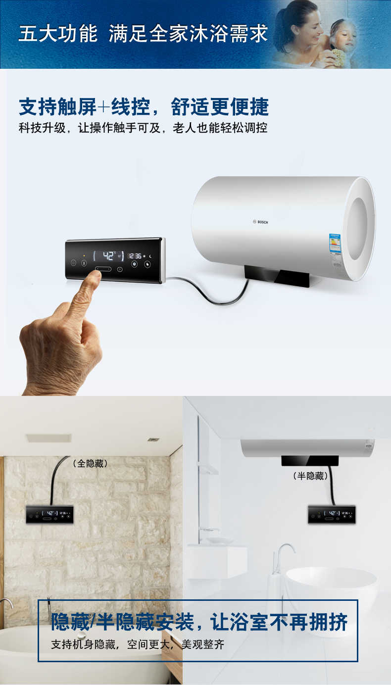 電子式控制,無機(jī)體控制器,遠(yuǎn)程線控器,可隱藏或半隱藏安裝。可選容積為50L/60L/80L/100L。