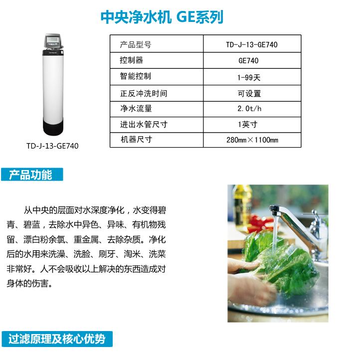 中央凈水機全自動垡頭有效去除水中的異色、異味;進一步濾除水中微小雜質(zhì)、膠狀體;去除水中的漂白粉余氯、農(nóng)藥、重金屬;保留對人體有益的礦物質(zhì)。使水變得碧清、碧藍,去除對人體有害的物質(zhì)。