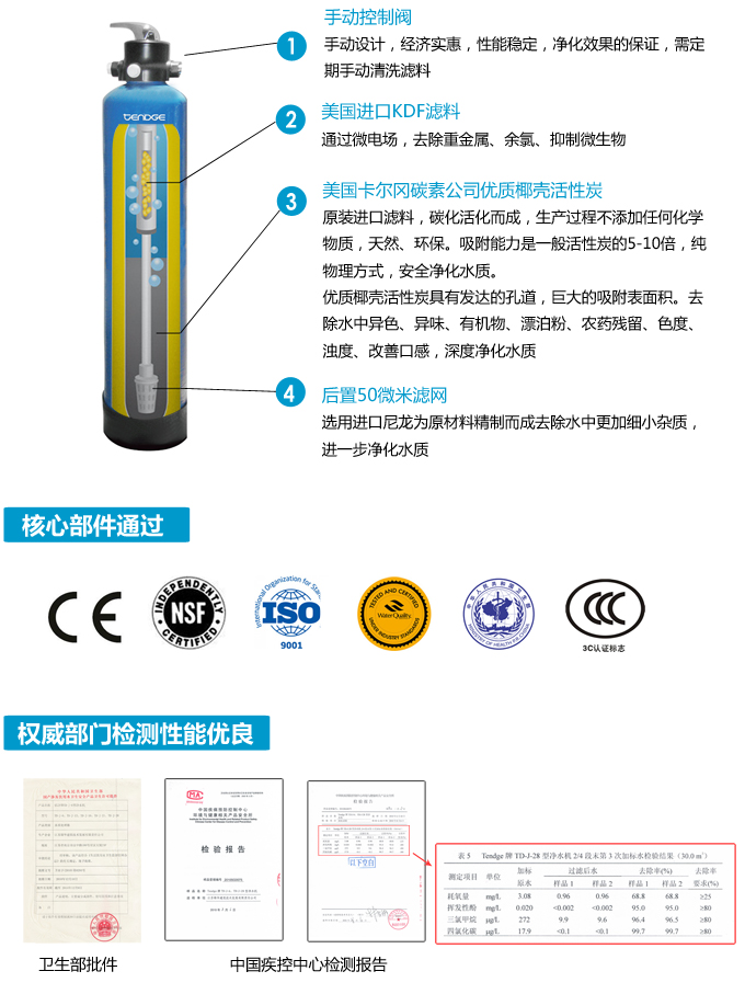 手動(dòng)中央凈水機(jī)有效去除水中的異色、異味;進(jìn)一步濾除水中微小雜質(zhì)、膠狀體;去除水中的漂白粉余氯、農(nóng)藥、重金屬;保留對(duì)人體有益的礦物質(zhì)。使水變得碧清、碧藍(lán),去除對(duì)人體有害的物質(zhì)。
